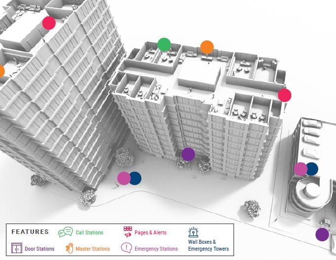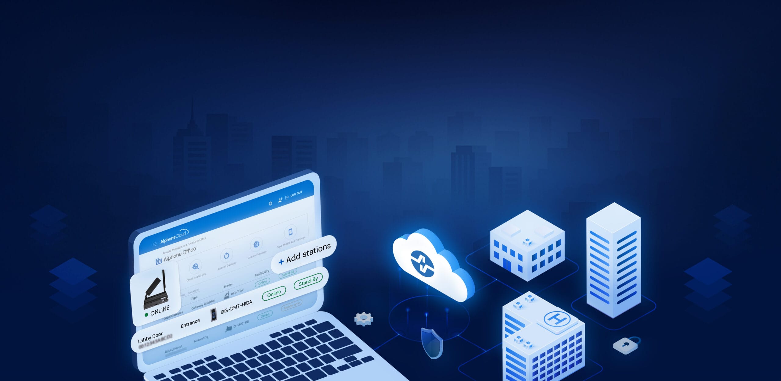Aiphone samler dørkommunikation, adgangskontrol og intern kommunikation i en platform. Løsningen kan bruges fra mindre installationer til større bygninger med mange indgange og lokationer.
